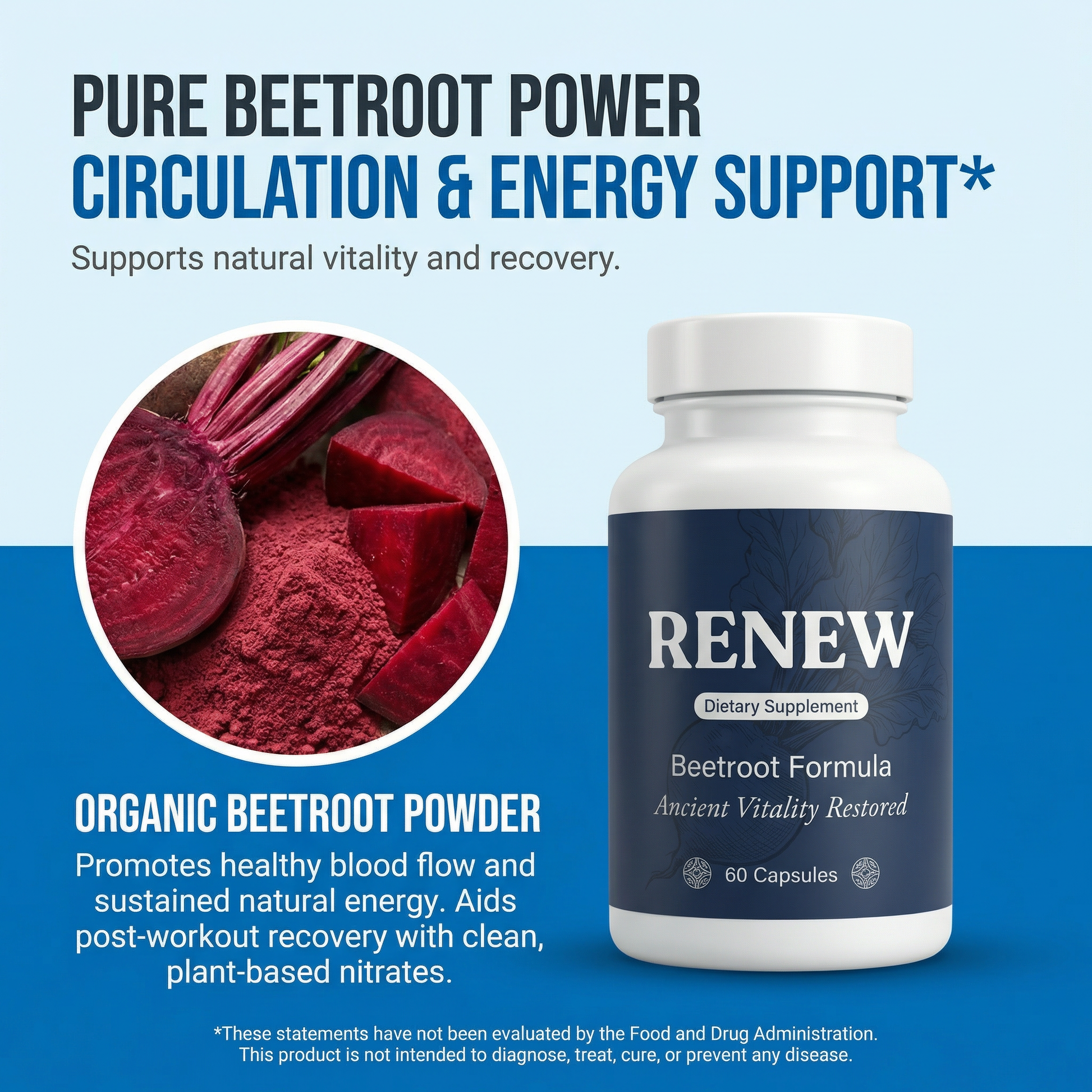 Renew Beet Root is a circulatory support formula designed to help support healthy blood flow.